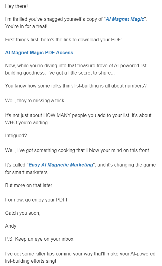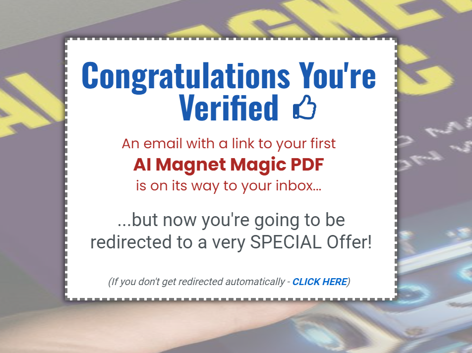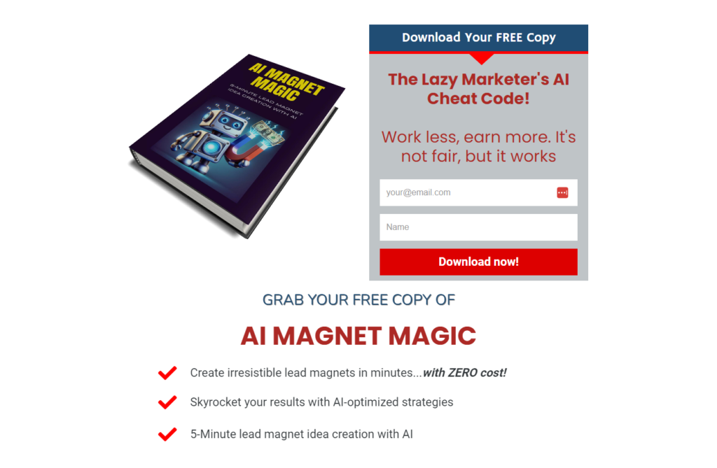 Once you have followed the simple steps in the PDF guide you will have imported an attractive squeeze page promoting the rebranded “AI Magnet Magic” report.